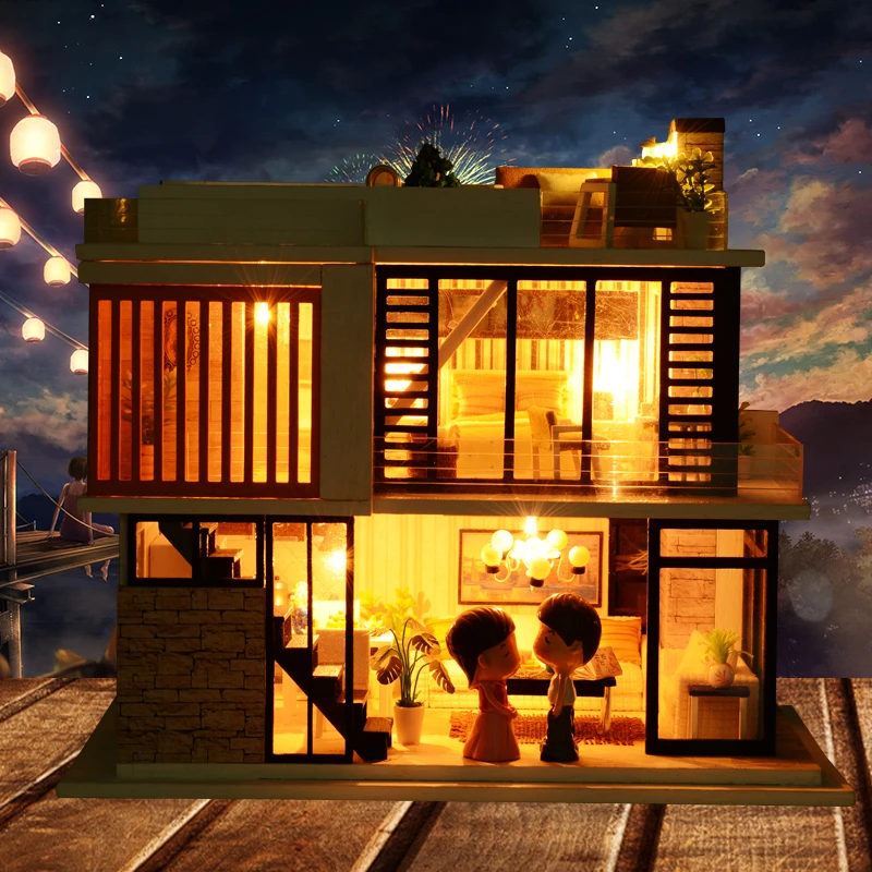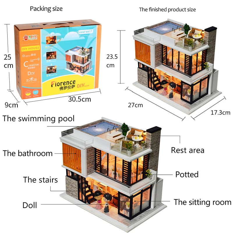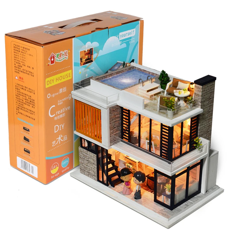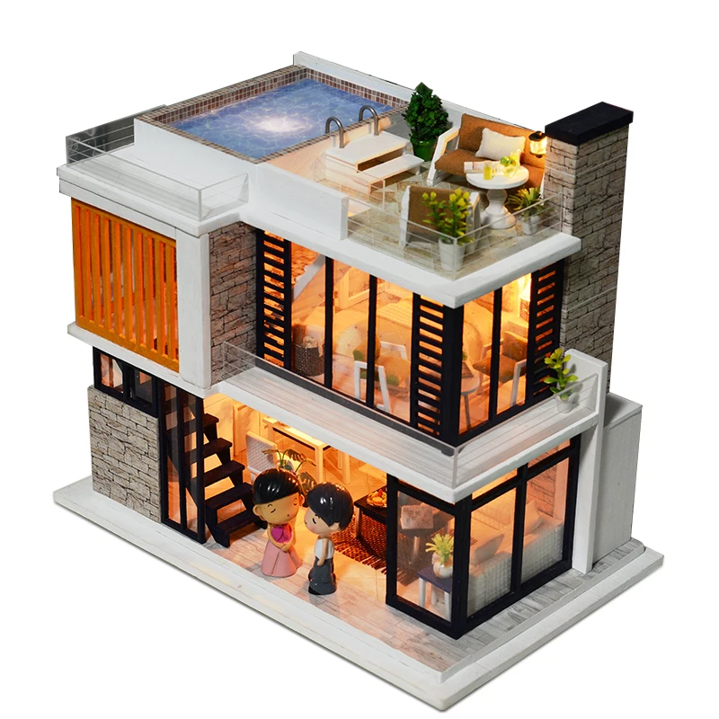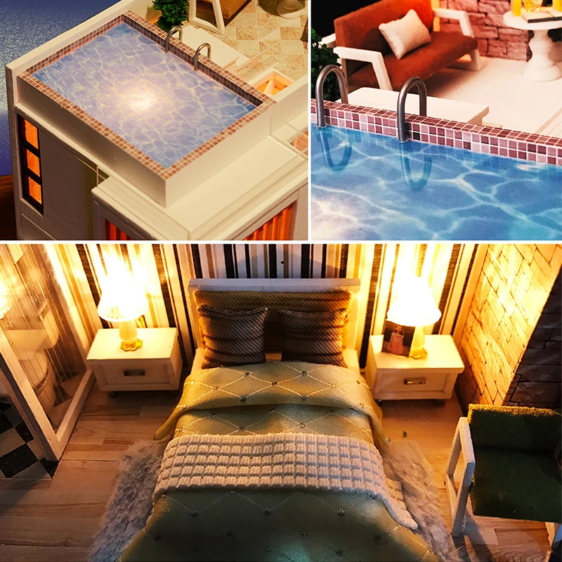 astounding Doll House Furniture DIY Miniature 3D Model Doll Houses Pool Wooden Miniature Dollhouse Assembly To