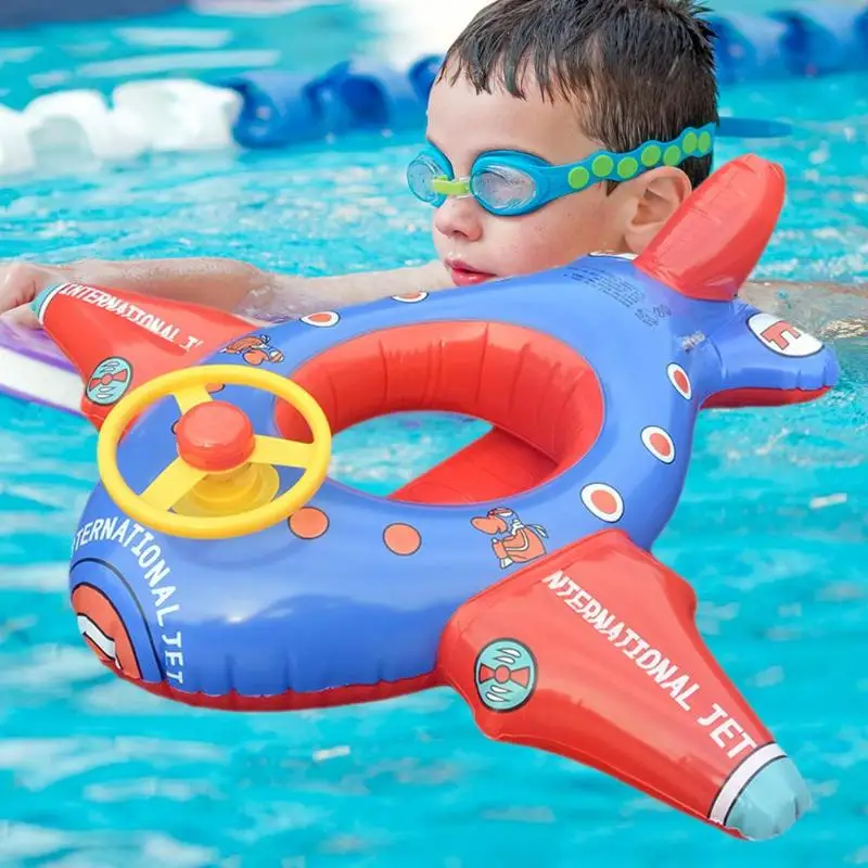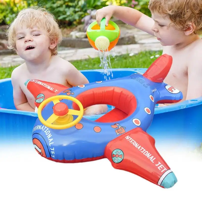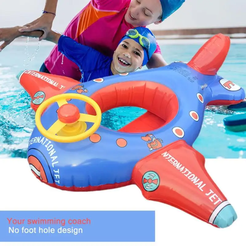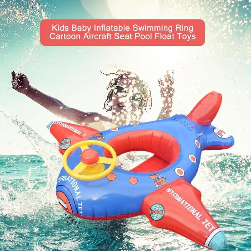 astounding Inflatable Swimming Ring Cartoon Aircraft Seat Plane-shaped Float Circle Kids Baby Pool Float Toys