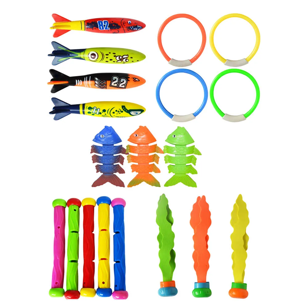 price cut 19/27pcs Shark Torpedo Rocket Throwing Toy Diving Game Toy Seaweed Grass Swimming Pool Accessories
